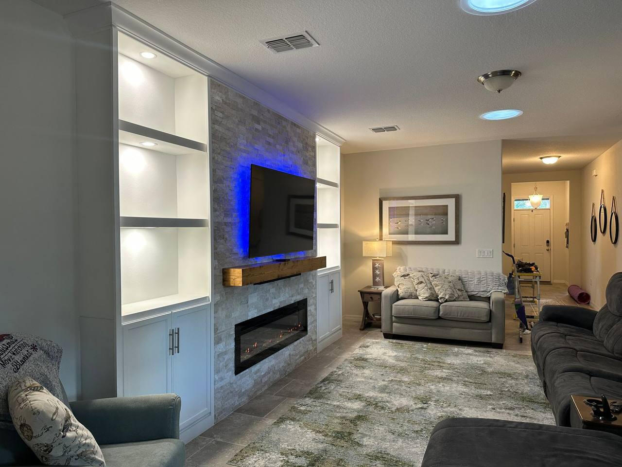 Completed accent walls, media walls, built-ins, and ceiling projects across Florida. Our work includes installations in Orlando, Tampa, Sarasota, Miami, Naples, and surrounding areas.