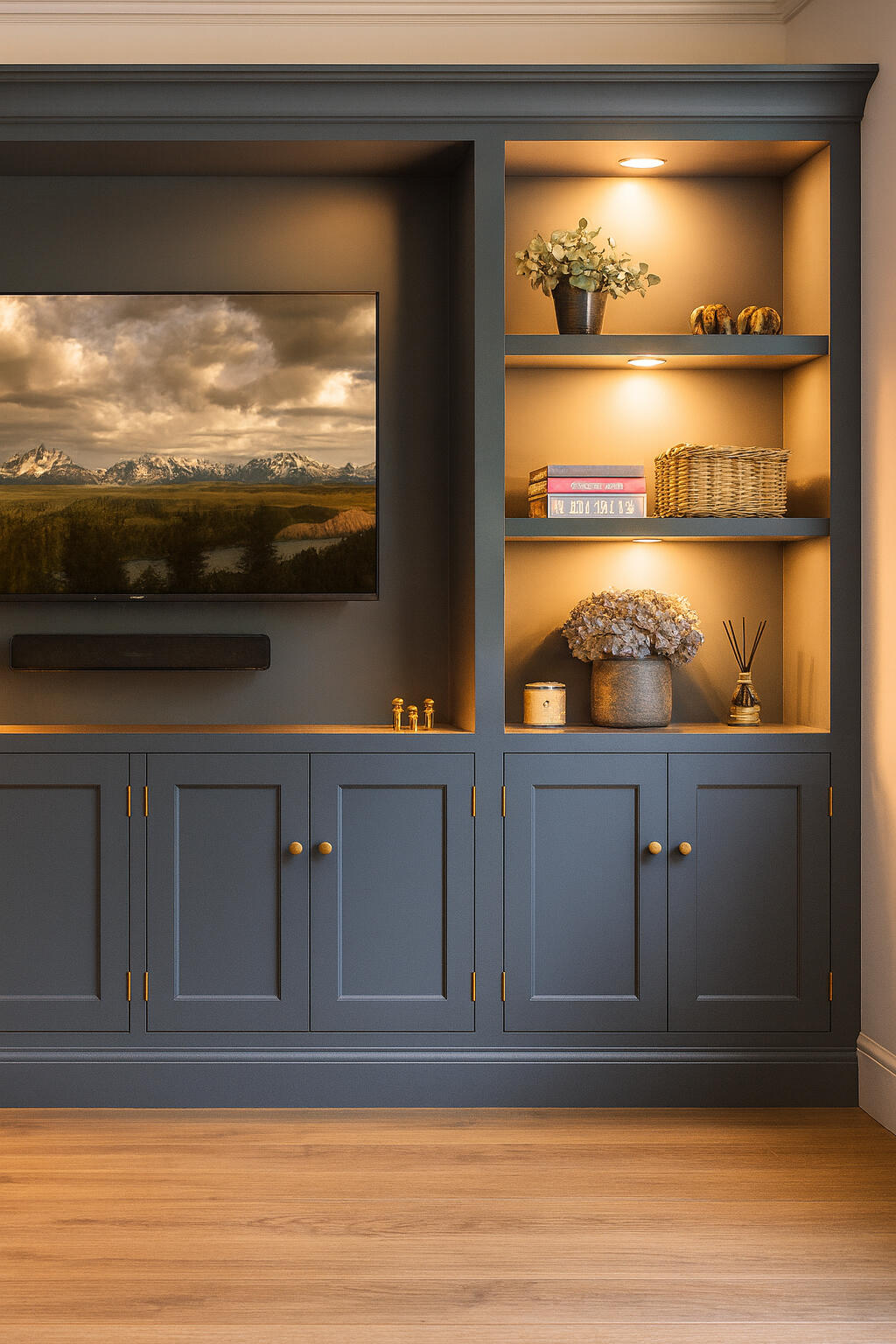 Built-in cabinets and storage solutions for living rooms, bedrooms, offices, and media areas. Designed to fit your space.